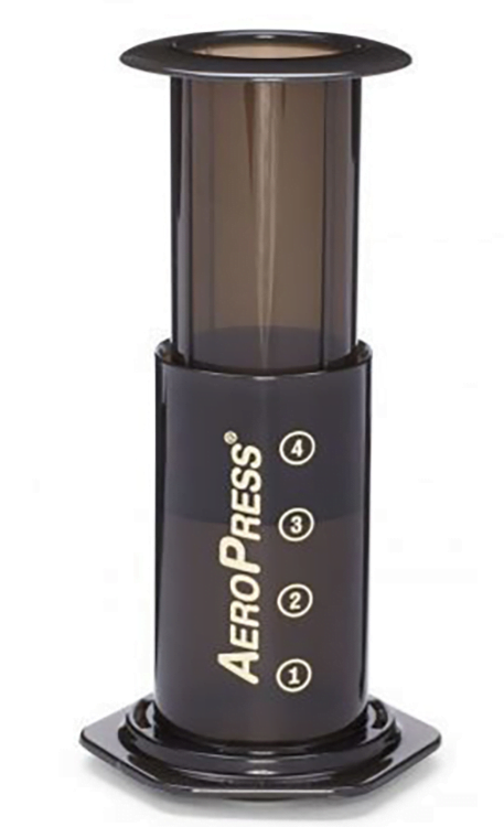 Boil water externally while placing filter paper or a metal filer (that can be re-used) into the coffee basket. Place a scoop of coffee into the body, and pour boiling water into the AeroPress body. Use the stirring paddle to stir gently. Top with more boiling water and screw on the coffee basket with a filter; allow steeping for 1-2 minutes. Place the AeroPress over your cup, and press the coffee into your cup. Add your choice of milk if desired…The AeroPress has a coffee scoop, stirrer, funnel, and paper filters.