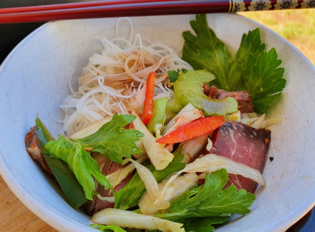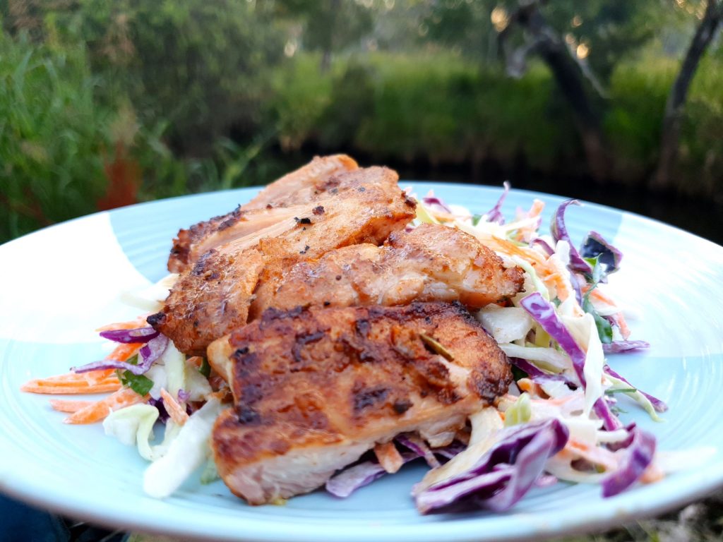 - 3 ingredient grilled chicken thigh, and slaw salad. 3 ingredient recipe here.